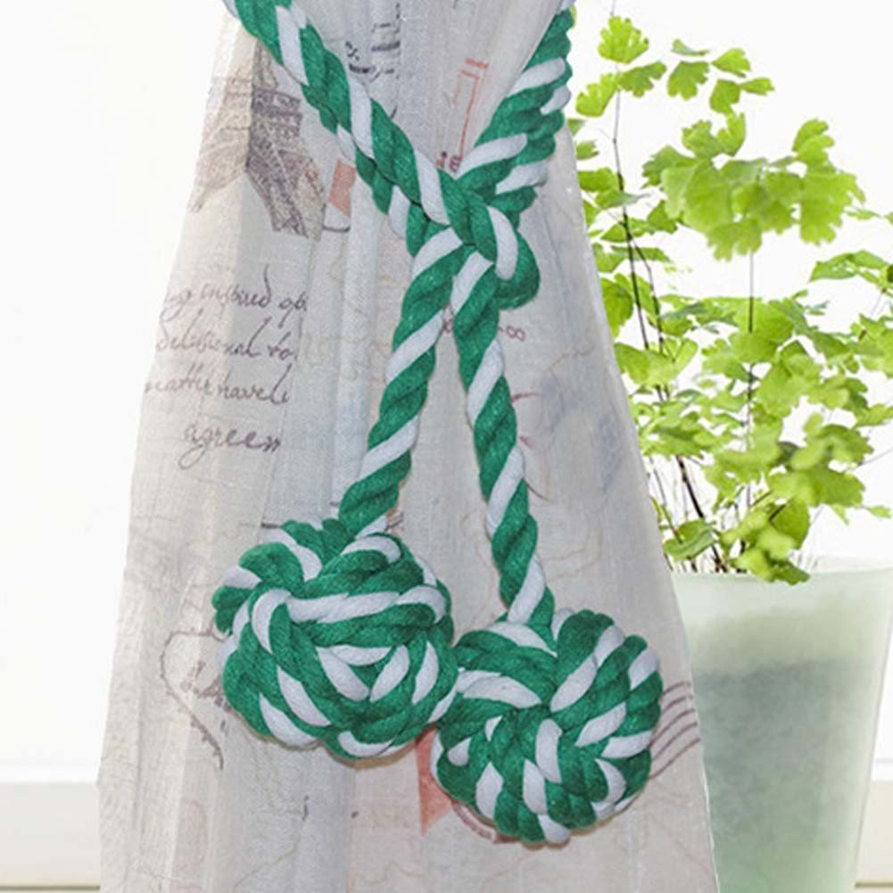 Home > 2 Pcs Cotton Rope Curtain Tiebacks Decorative Tassel Rope Tie Backs Knitting Knot Buckle Cord Drapery Tieback, Green White