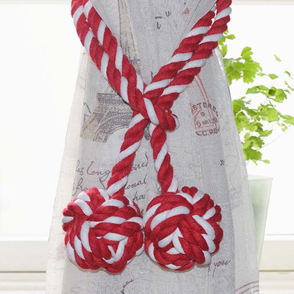 Home > 2 Pcs Knitting Buckle Cord Drapery Tieback Cotton Rope Curtain Tiebacks Decorative Knot Tassel Rope Tie Backs, Red White