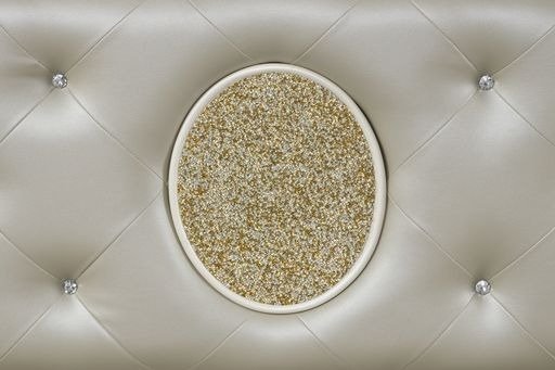Traditional Old World European styling elements are blended to create a romantic look in this Bedroom Collection. The heavily framed upholstered headboard features champagne-tone with crystal button tufting. This collection is crafted and inspired by the luxurious designs of the past; expertly detailed with a modern touch of LED lights. In the center of the headboard and footboard lies minimalistic geometric work that marks the space and renders it harmonious and elegant. The Luxurious Bedroom Set is perfect for those who want contemporary opulence. This set includes a King/Queen Bed. Each piece is equipped with unique lights in the corner of each frame; creating an exceptional design offering unmistakable style and excellence. The case goods boast gold accent drawer pulls; enhancing the presentation. Drawers provide spacious storage for your stuff and other essentials; making this case goods a grand yet functional home companion. The Designer Luxury Bedroom Set is the epitome of pure elegance and a perfect bedroom set for the luxuriously traditional homeowner!